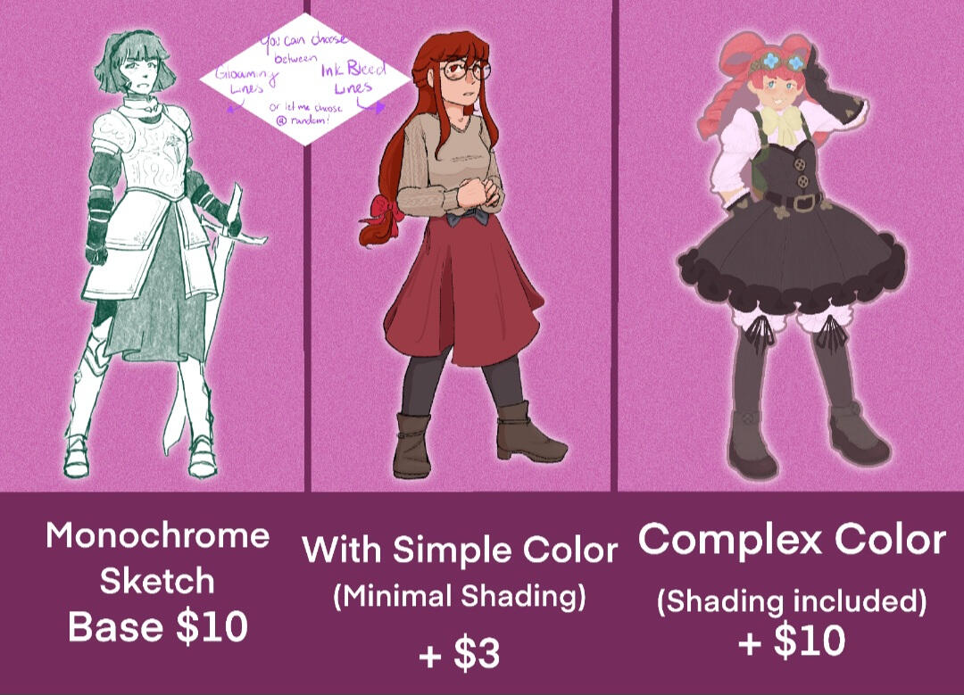 COMMISSION PRICESโโโโโPlease note these are my base prices, and may increase at my disgression based on what you ask forโโโโโโข Monochrome Sketch: Base $10